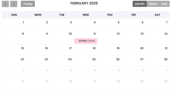 Once scheduled, the meeting will appear in the sessions table and will also be visible in the calendar.